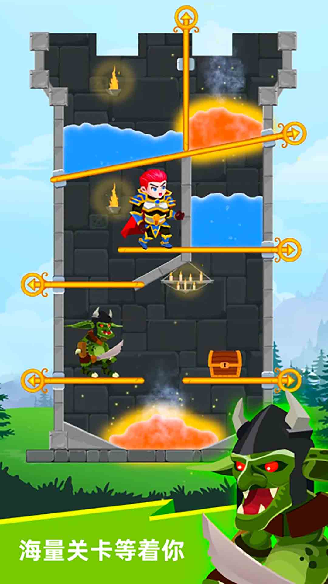 1、要从一个关卡不断挑战到另一个新的关卡,请按正确的顺序拉动所有销钉。