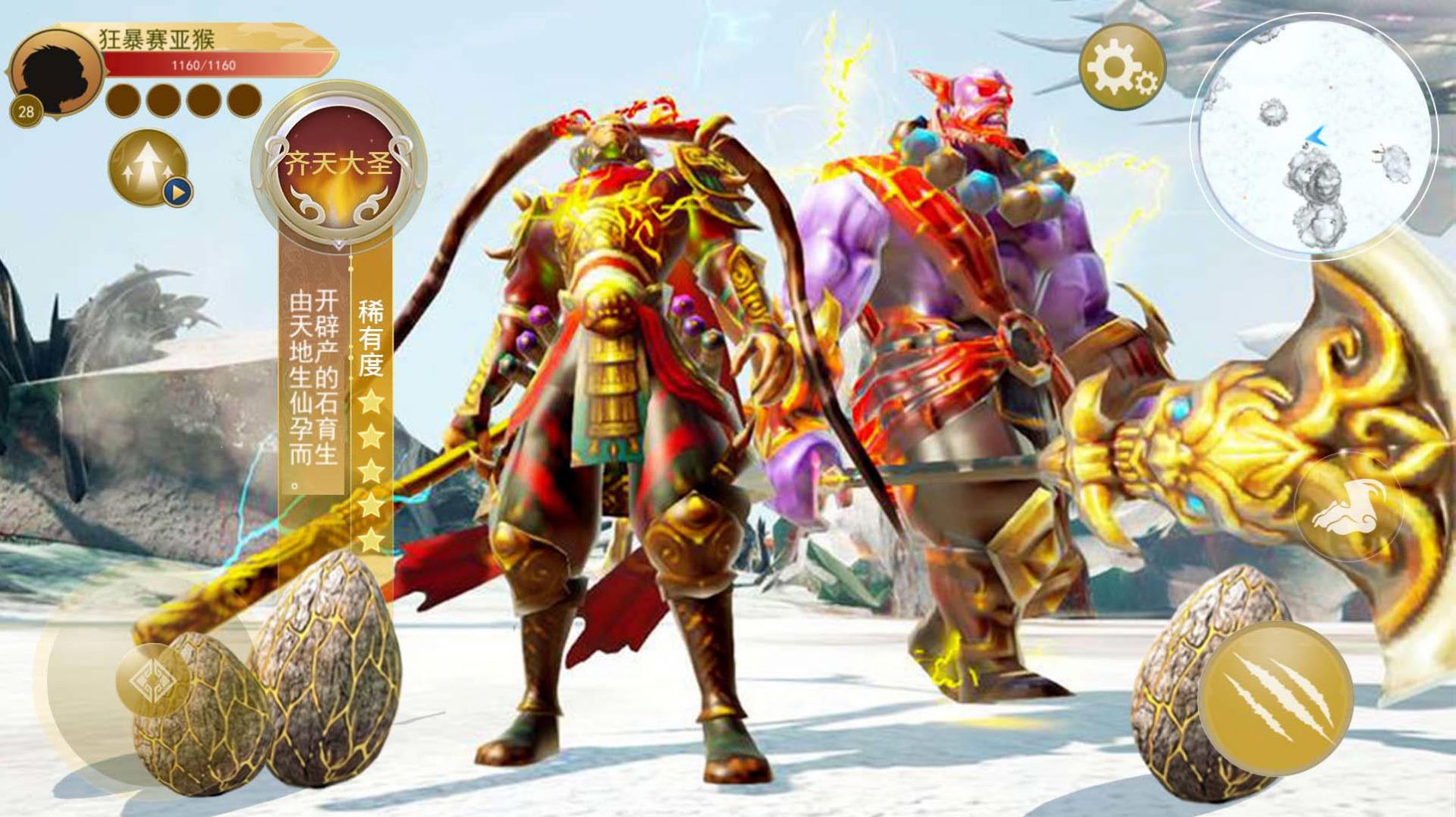1、全新3D游戏画面,挥舞金箍棒,闯荡天地,体验一场激情四溢的神话冒险。
