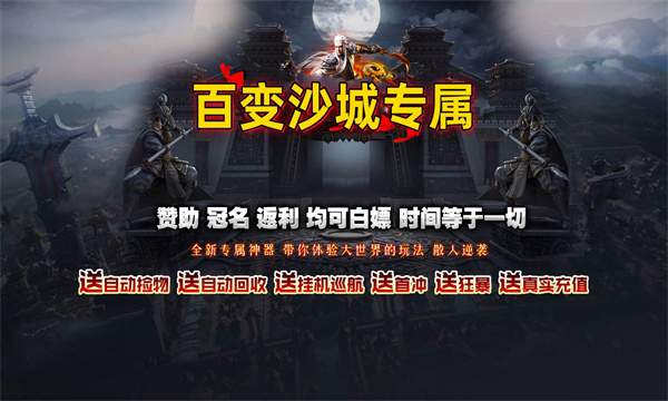 百变沙城专属是一个大型的沉默专属传奇游戏,还是以经典沙城争霸的主题展现其中精彩玩法,更是准备了海量免费福利,让玩家尽情白嫖。这个百变沙城专属传奇之中,上线即可免费赠送受宠福利,更有自动装备回收,自动拾取以及无限狂暴切割等多重福利加持,神器模式全新觉醒,强大散人职业,带领玩家纵横传奇世界。