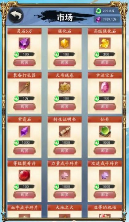 2、炼化灵石、神水等道具,加速升级,迎接更大的挑战;