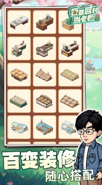 我要回村当老板是一个休闲田园风的放置经营养成小游戏,主要通过轻松简单的田园风生活为主,让玩家开始各种农作物的种植,呵护与养成,并且还需要头通过不同风格的装修,打造出景色靓丽的农场,简单休闲毫无上手难度的操作挑战,搭配轻松放置养成的益智玩法,让玩家可以全身心的沉浸在田园世界之中。