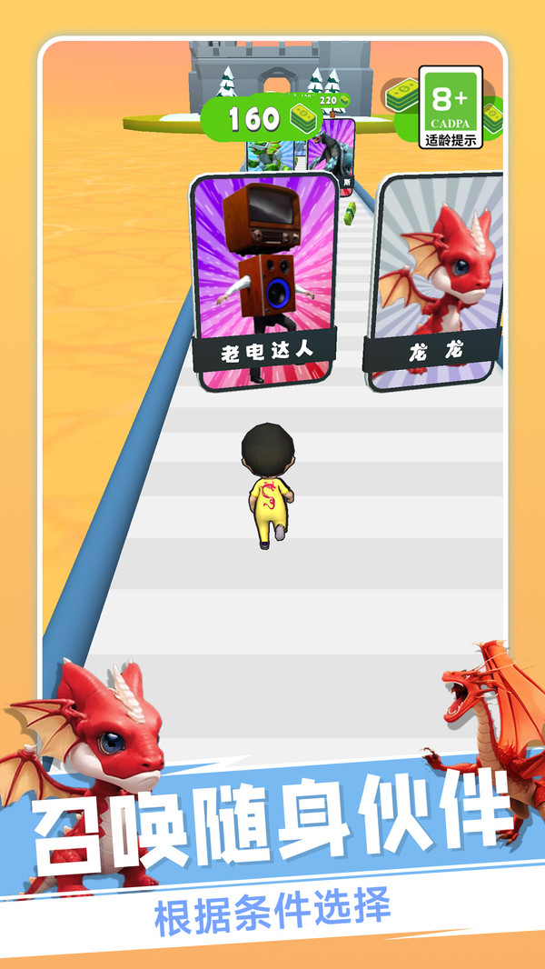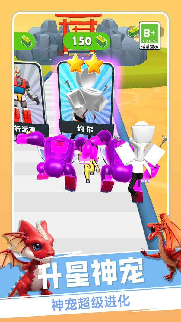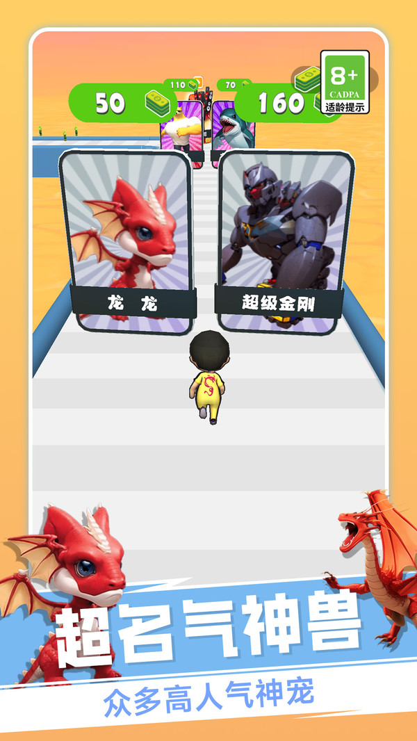 英雄大对战是一个玩法简单的跑酷冒险闯关小游戏,玩家可以携带可爱宠物一同冲关,根据不同障碍的选择,帮助宠物更快的进化变强,同时击溃跑酷道路中所有的障碍物,其中的整体玩法展现拥有十分丰富的精彩内容,面对极强可操作性,每一个玩家都能十分喜欢其中的精彩对决,多彩的玩法设定,伴随着极强的吸引力。