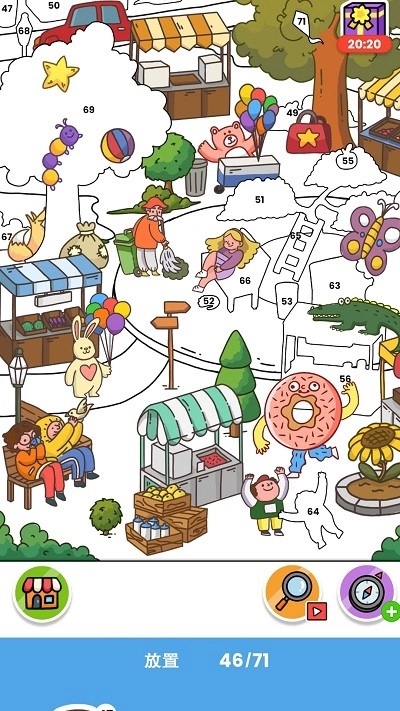 1. 玩家可以用自己的创造力来涂鸦和填色,并根据各个难度和主题完成涂色任务。