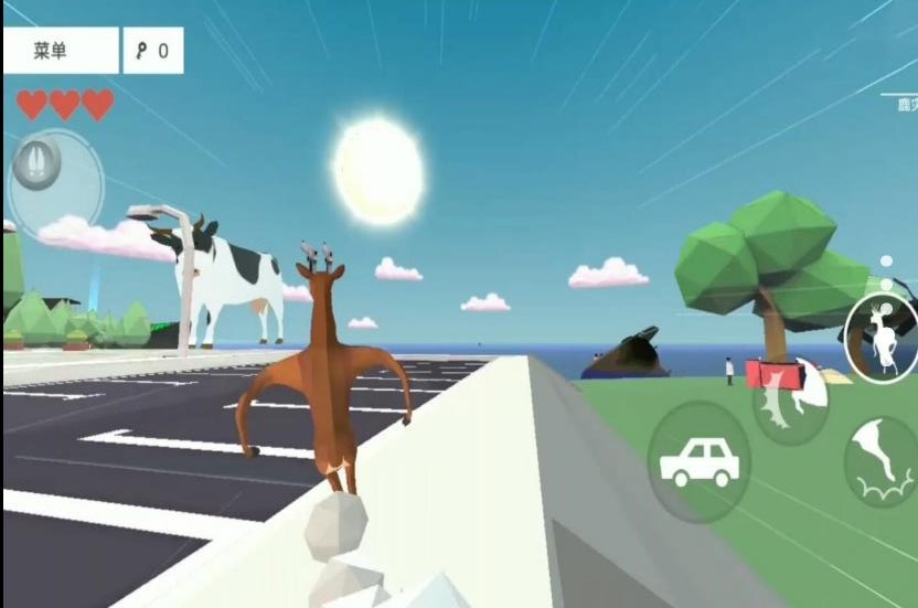 1、游戏的背景十分简单,最初你是一只普通的鹿,你变得非常强壮,开始破坏吧;