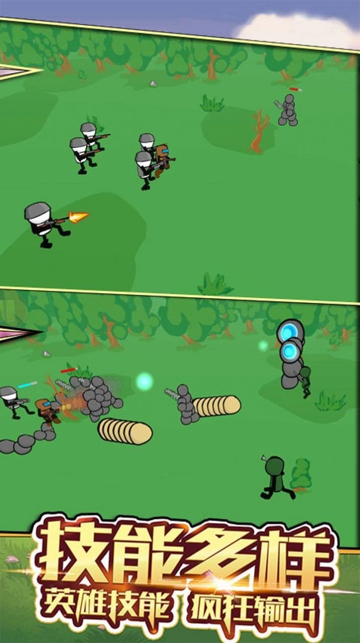 1.去开启热血的战斗过程,每一次的行动都要去全力出击,熟悉不同的火柴人兵种去开启挑战。