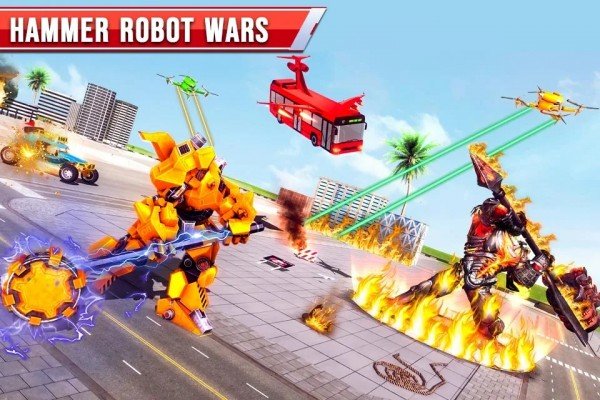 飞行巴士机器人车(hammer robot bus transform)一款模拟驾驶游戏,场景非常逼真。在游戏中,玩家需要在各种自然逼真的场景中驾驶巴士运送乘客,丰富的道路检查站和各种巴士等待玩家完成并解锁。了解地图中的所有道路并选择一个离目的地最近的道具驾驶,在规定时间内将乘客带到指定地点,很好的完成任务,喜欢的小伙伴来试试看吧。