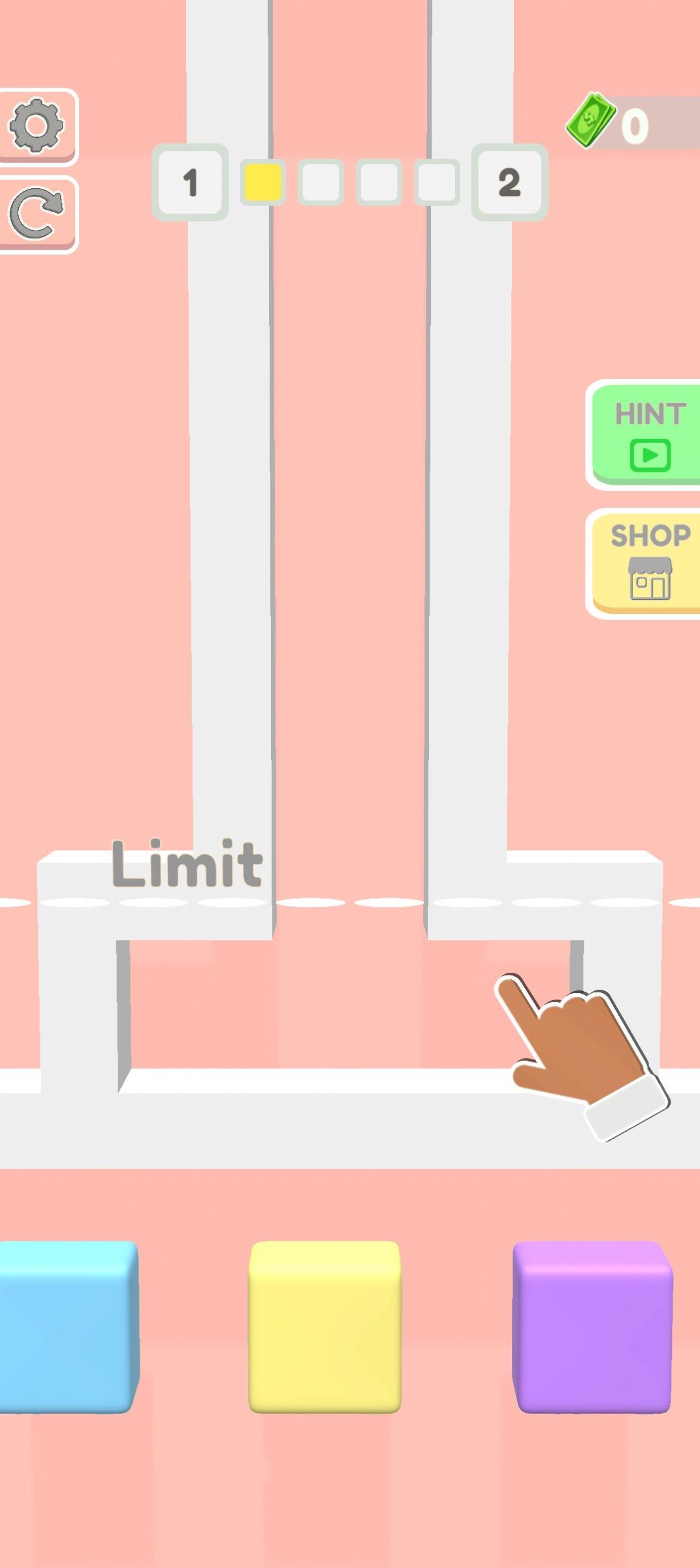 2、注意用手指来控制方块的走位,每一次争取吞噬大量的方块到你的体内;