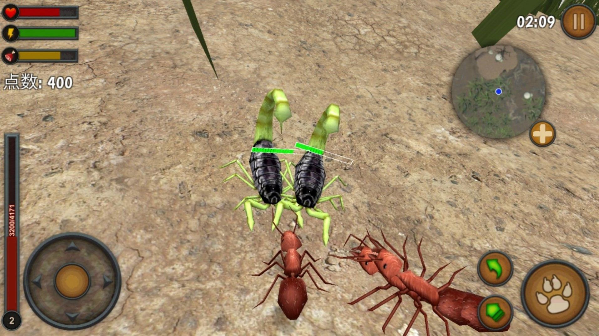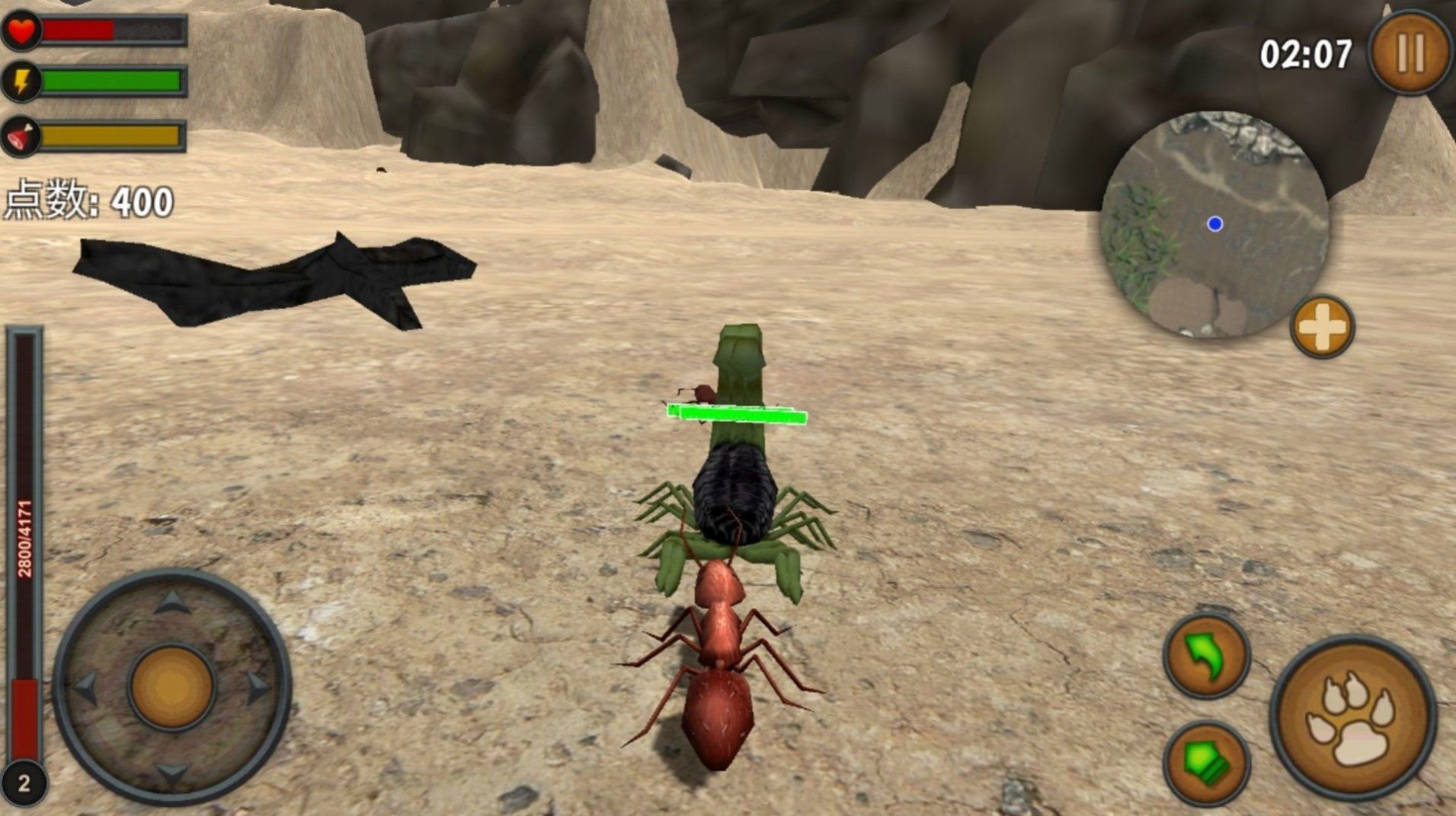 2、其它蚂蚁族群和巨大的蜘蛛也在寻找食物,如果你挡路的话将试图打败你;