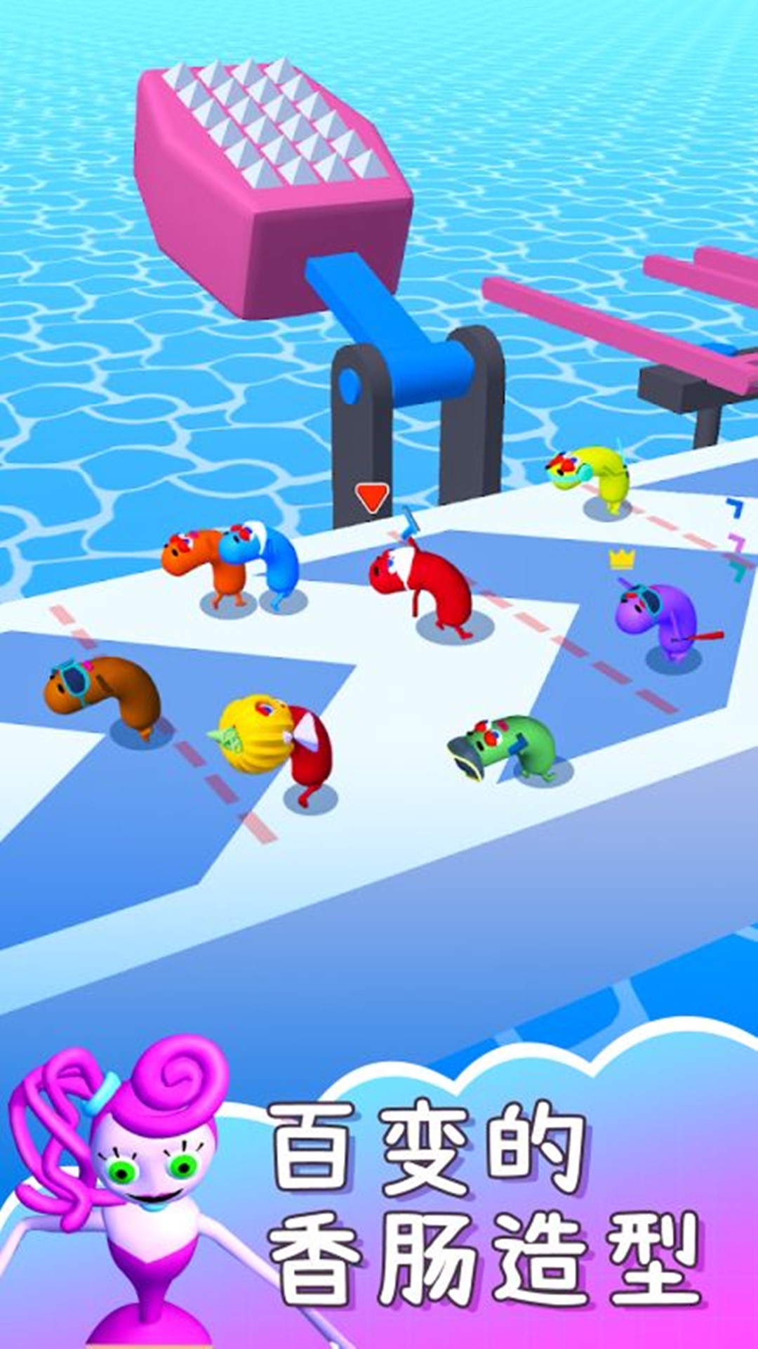 香肠欢趣派对这款游戏主要是休闲闯关的类型,其中是跑酷的玩法,上手还是比较快的,角色形象设计的非常有趣,玩的时候也会有意思很多,玩家主要就是操控角色不断的闯关,闯关的时候还会遇到障碍,要灵活的去躲避。