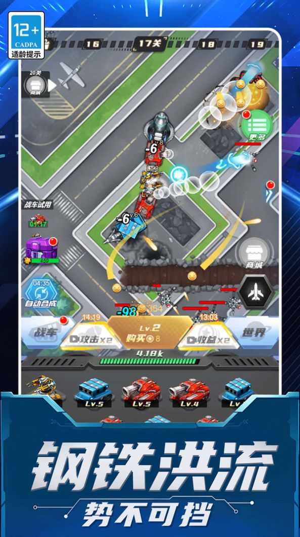 通过装甲坦克的合体,解锁机甲贪吃蛇,并且占领城市中的科研基地,不断攻击出现的敌人。