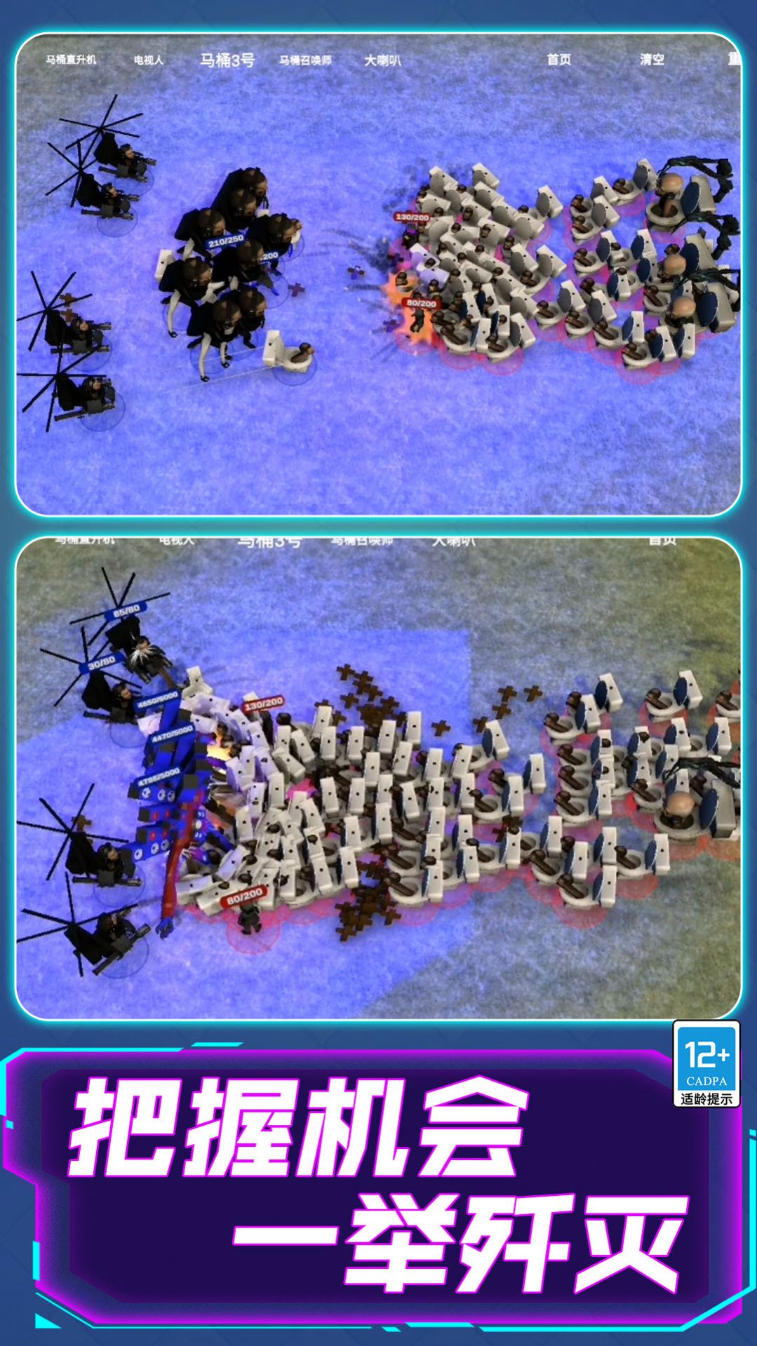 进击之王是一款厕所怪物与泰坦人战士的大规模的策略战争主题的游戏,双方军队的即时战斗,会根据自由的3D视角,让玩家全面掌控,需要灵活的战术策略,战胜自己的敌人,才能彻底稳定游戏世界的战场情况,壮观的视觉效果,更清晰的画面反馈,搭配高度自由的趣味玩法模式,让超多玩家都会非常喜欢其中的精彩你玩法对决。