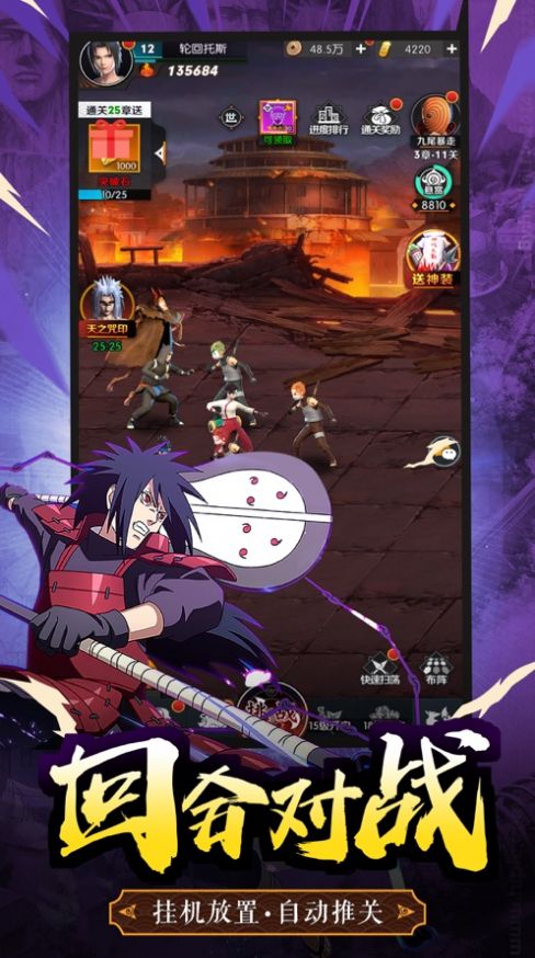 多个阵营的英雄角色,强力忍者全面集结,疯狂的放置策略对战,让玩家沉浸在精彩的游戏挑战之中。