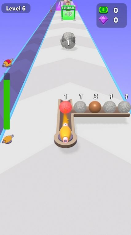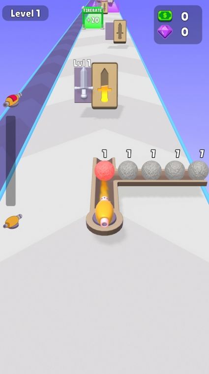1、动作操作让角色在剑槽中不断向前冲刺,并收集金币和道具;