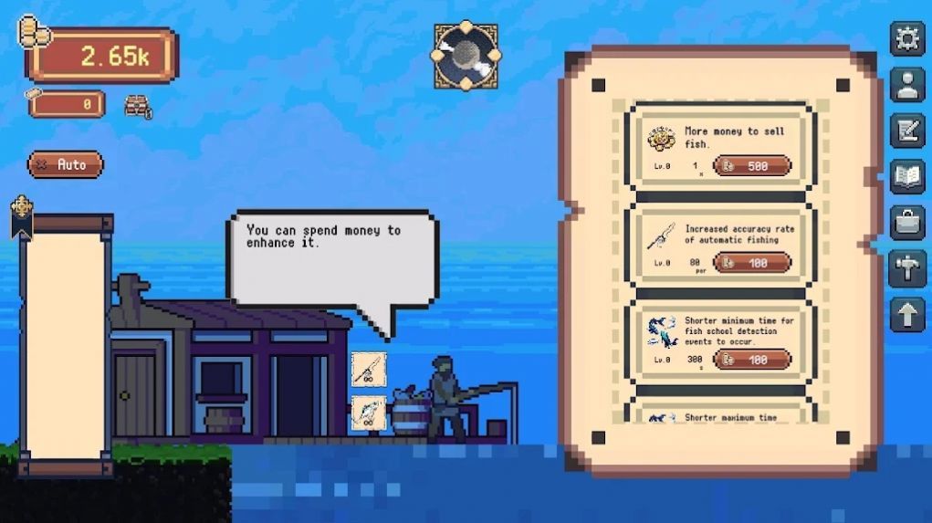 3、通过赚取金币,升级渔具和店铺,提升钓鱼效率和经营能力。