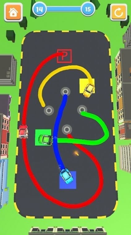 -玩家将控制他们的汽车停在游戏中,不同之处在于您需要用手指画一条线来停放;
