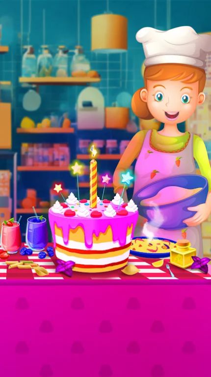 1、卡通梦幻画风,打造缤纷蛋糕世界,角色与食材生动可爱;