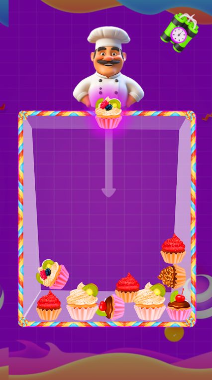 2、在有限空间内合理布局,快速合并出指定蛋糕以完成任务;