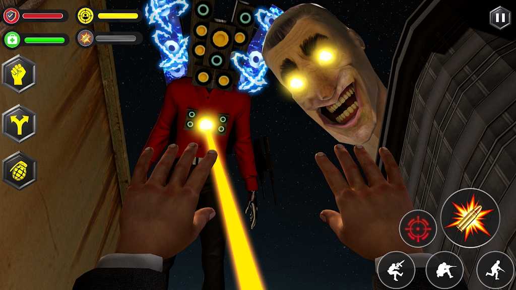 1、运用灵活的操作和准确的射击技巧,与马桶人怪物展开激烈的对抗。