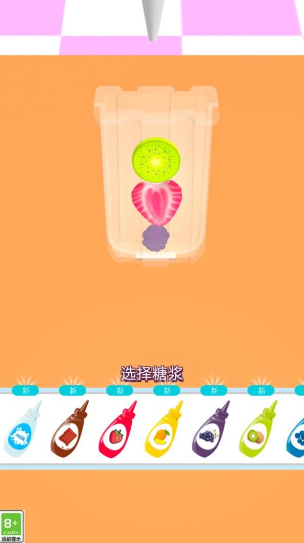1、甜品都是需要添加糖浆的,游戏提供了很多种,自由的选择一个添加;