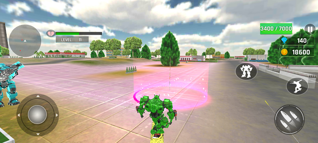 绿色变形机器人大冒险开放3D城市机器人变形金刚城市大冒险主题的游戏,采用机器人战士的多形态变身,更多活动在游戏是接之中,并且让玩家以第三视角的操作方式,掌控机器人战士的强大战斗力,不断的探索和冒险,深入挖掘游戏世界的精彩内容,体验其中刺激带感的玩法挑战。