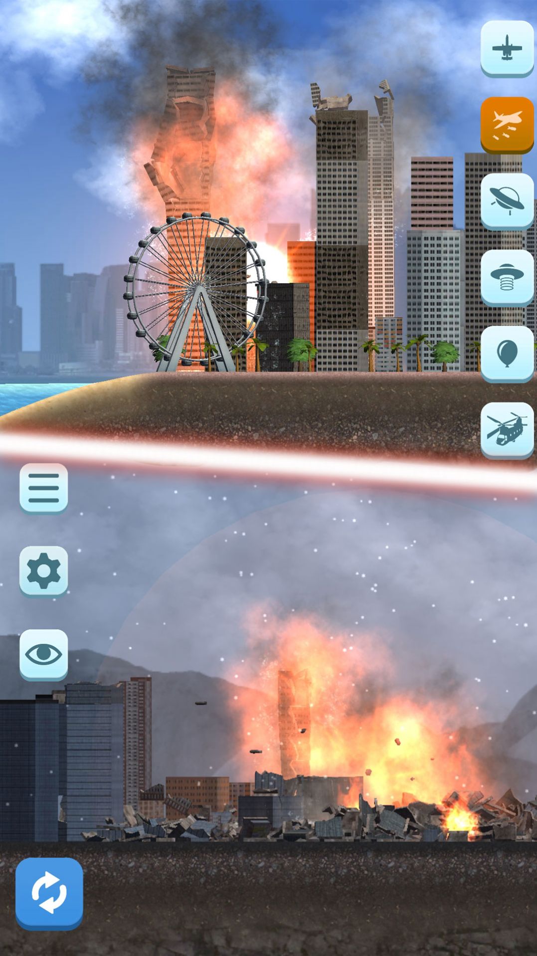2、利用数十款不同的武器,尽情摧毁每一个建筑,打造出世界末日的景象,