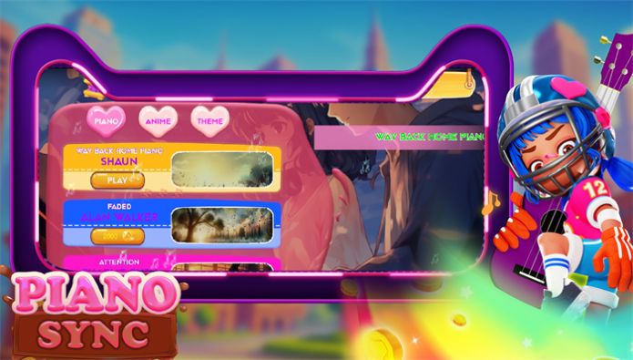 1、一款有趣又休闲的游戏,非常容易体验,采用精致的画面设计,融合钢琴键盘和音乐元素。