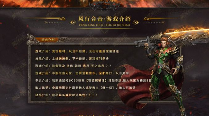 风行合击传奇是一款大型合击主题的游戏,以神秘的大陆世界作为背景,设置了多个强力角色让玩家在其中不断征战,经典三端互动模式展开,变态属性加成和复古的合击对战玩法,也都可以轻松带给玩家们,完善的社交匹配系统,真人玩家的实时在线竞技,都能让这个传奇的可操作性以及吸引力更上一层楼。