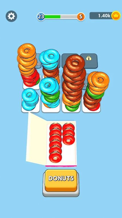 甜甜圈分类大师(Donut Sort Master)游戏的操作非常简单,玩家只需点击并拖动甜甜圈,将它们放入相应的分类区域,游戏中将会有多个关卡,每个关卡都会有不同数量和颜色的甜甜圈,让玩家面临不同的挑战,关卡的难度将逐渐增加,需要玩家不断提升自己的观察力和分类能力。