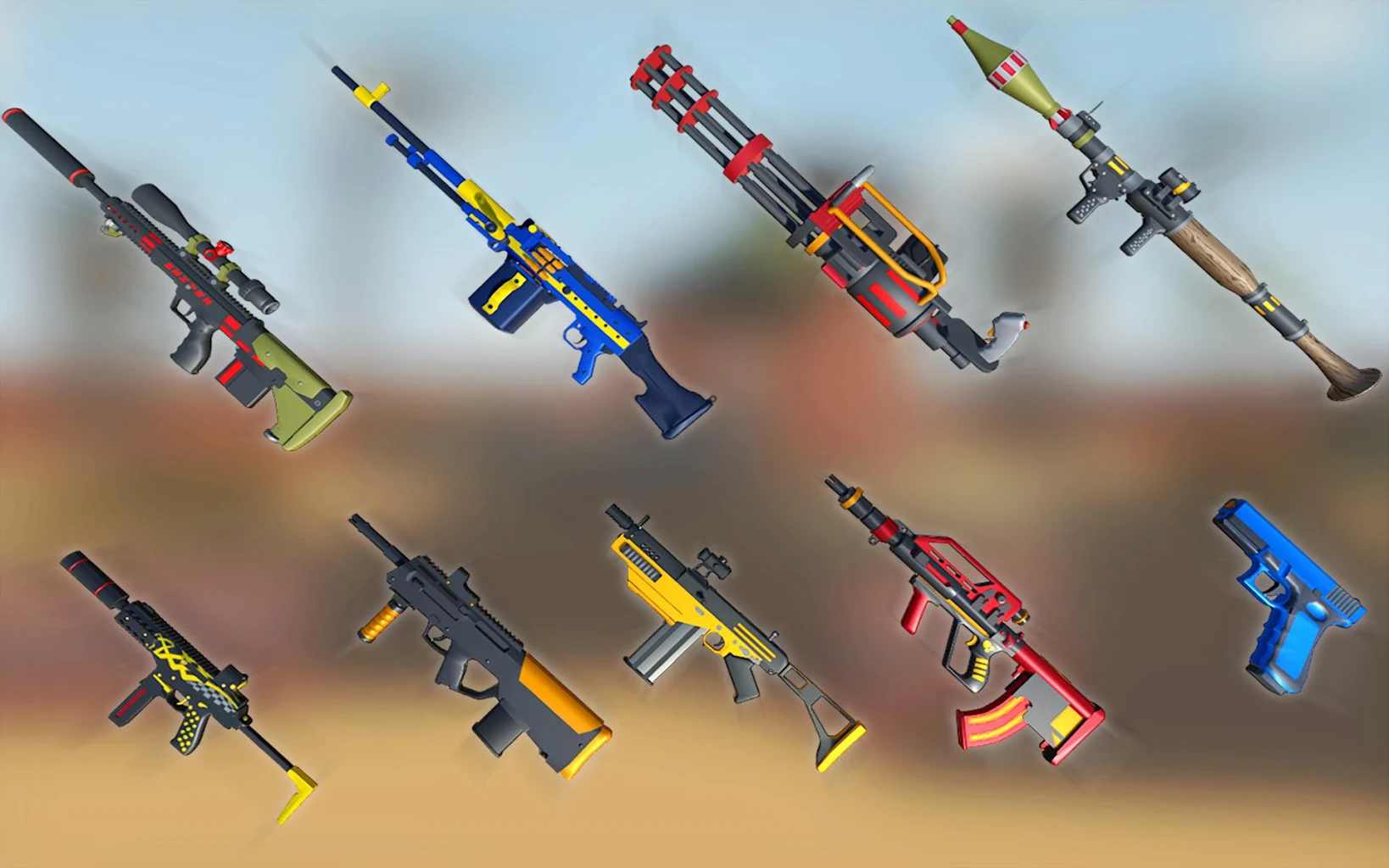 皇家枪战对决(Royale Toon Battle)是一款竞技射击游戏,并且有许多任务等待玩家选择。我们需要使用各种武器来完成一个又一个的挑战。在游戏中,玩家可以感受到很多内容等待玩家选择。采用了经典的3D卡通风格,可以给玩家带来更好的乐趣,喜欢的小伙伴来参与吧。
