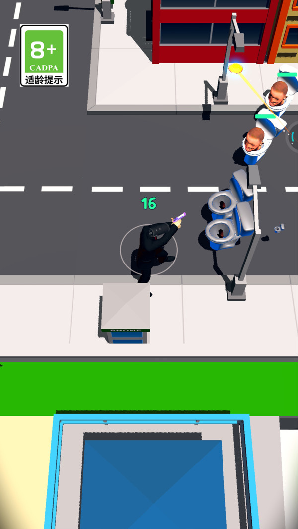 1、结合厕所怪物与可怕的马桶人大军,在3D的卡通城市之中,玩家要尽可能消灭它们。