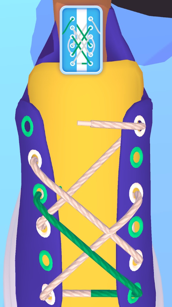 3、简约的游戏玩法,消磨无聊的时间,掌握更多的方法,轻松完成鞋带任务。