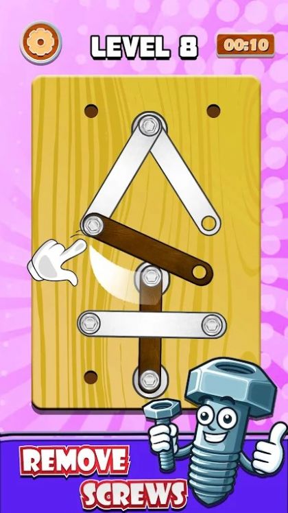 螺母大师螺母和螺栓(Bolts and Nuts Screw Master)游戏采用精准模拟真实世界螺栓与螺母连接方式的物理引擎,增加了操作时候的真实感和沉浸感,从简单到复杂,关卡设计涵盖初学者到高级玩家,确保每个人都能找到适合自己水平的挑战,