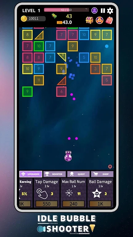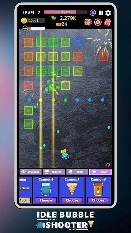 放置彩色泡泡射手(IdleBubbleShooter)这款游戏融合了泡泡射击和城市建设两种玩法,创造出独特的游戏体验,随着游戏进程,玩家可以解锁并升级各种建筑物和装置,每个建筑都有其独特功能,比如提供额外资源、增强攻击力或改善防御能力。