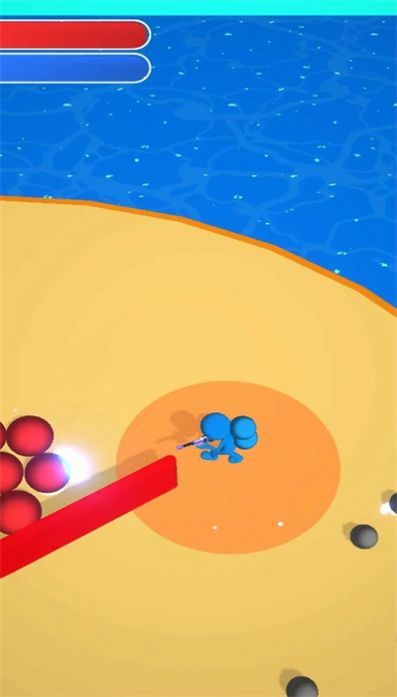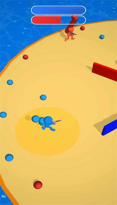 1、选择并操控橡皮人角色,收集场景中的彩球资源,向敌方阵地发起进攻;
