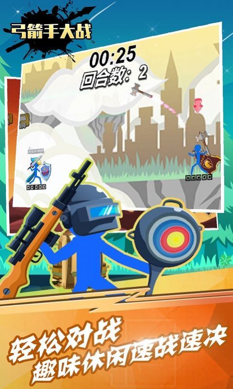 1、玩家们将能自由选择自己的武器和技能,弓箭手大作战下载后在大型随机生成的游戏场景内展开激烈的厮杀。