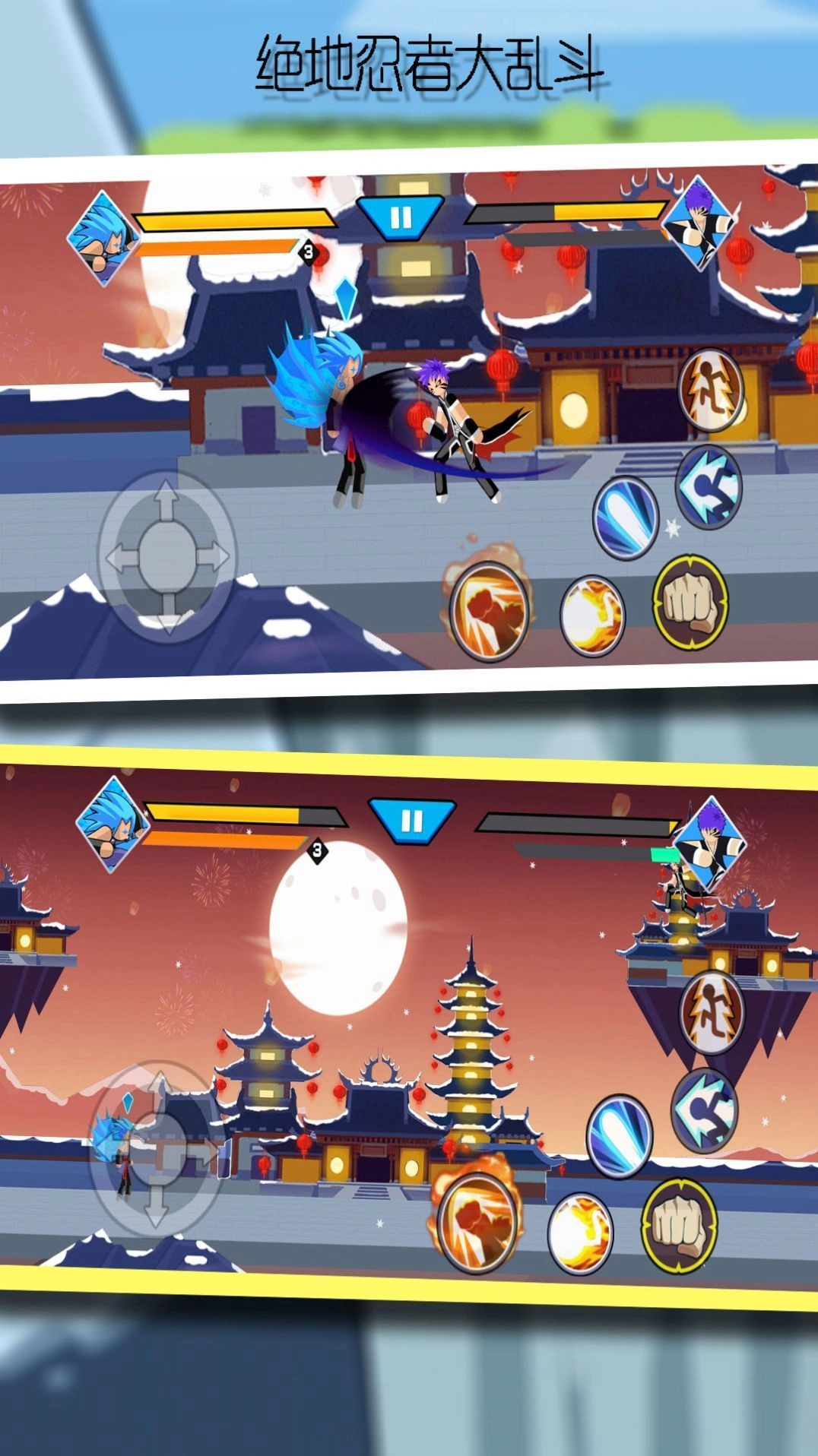 1、强大忍者指尖的对决,通过熟悉的2D平面画风打造而成,还原强烈街机既视感,