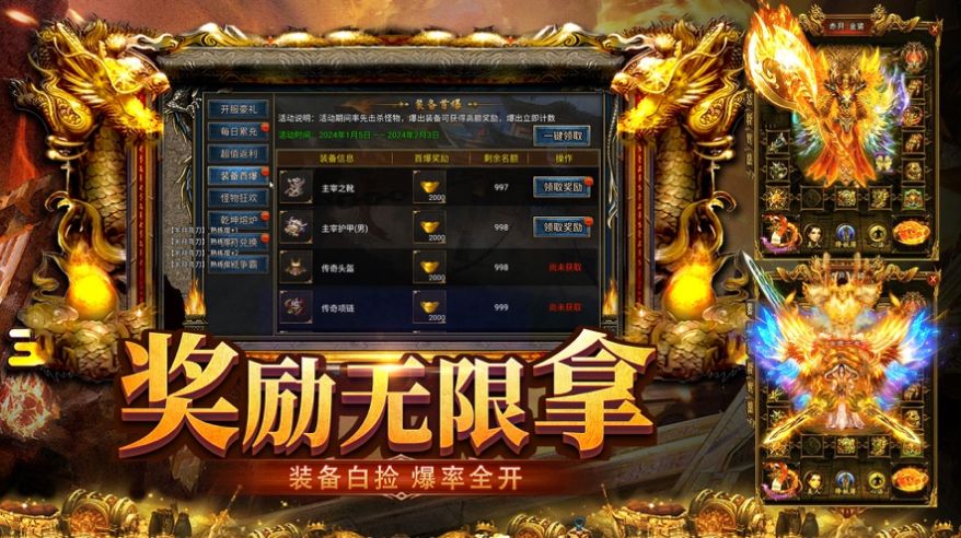 2、这里的神装你可以尽情的爆,还可以通过挂机去将所有的怪物消灭;
