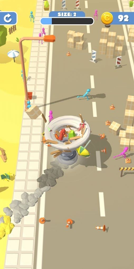 目标物体可以卷入龙卷风中,并随着旋转速度逐渐增加。随着龙卷风的增长,玩家还可以造成更多的破坏和混乱。