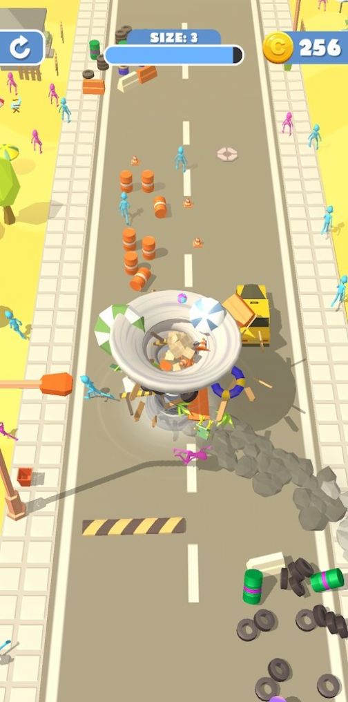 龙卷风的移动方向完全由你来控制,在操作的过程中,只需要滑动屏幕即可,对于想要吞噬掉的物体;