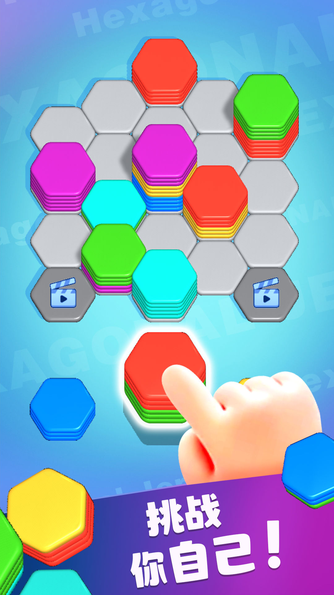 都来减减压将传统的俄罗斯方块玩法与六边形图案相结合,创造出全新的挑战和体验,使用六边形而非传统正方形或长方形,为玩家提供了不同寻常的空间感知和策略规划挑战,随着得分增加,游戏难度逐渐上升,每个新关卡都会带来更复杂的图案组合和速度要求,保持游戏趣味性和挑战性。