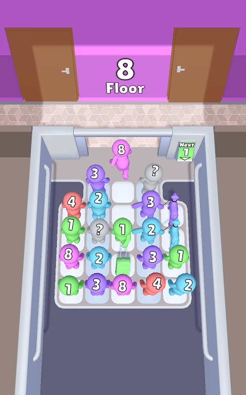 电梯排队(Elevator Queue)结合了时间管理和策略规划元素,玩家需要灵活应对各种突发情况,不同的乘客具有不同的行为模式和需求,例如快速上下班族、悠闲购物者或带小孩的家长等,每种乘客都有自己独特的耐心水平和移动速度。
