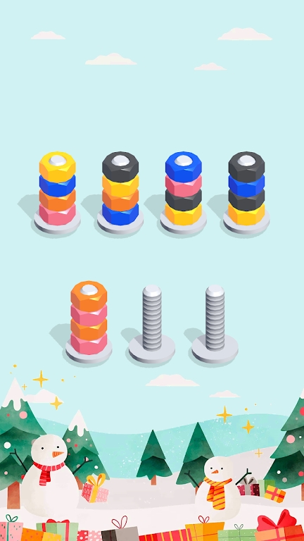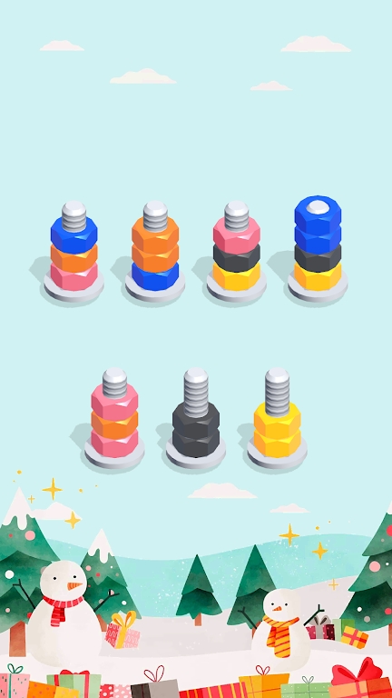 螺丝和螺母彩色排序(Screws & Nuts-Colorful Sort)每个关卡都有独特的布局和挑战,随着玩家进度增加,螺母和螺丝的组合会变得更为复杂,鲜艳的颜色搭配使得游戏界面看起来既美观又直观,不同颜色代表不同类型或大小的螺母和螺丝,帮助玩家快速识别并进行匹配。