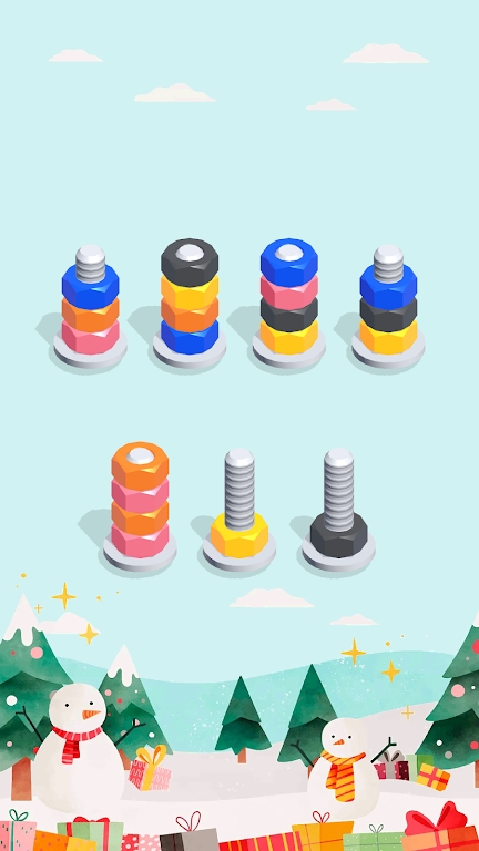 2、将相同颜色的螺母和螺丝配对成功,即可消除,也是十分有趣;