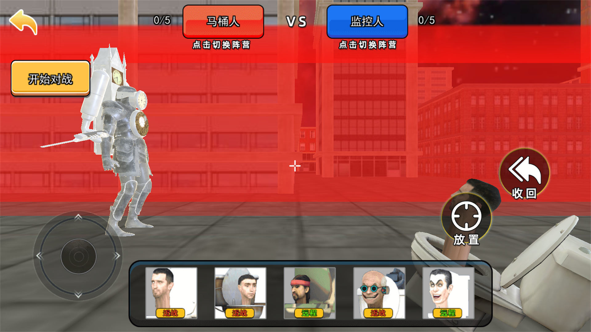 开放3D战场背景,经典的马桶人城市乱斗主题,熟悉的厕所怪物题材热血战争可以让玩家尽情体验。