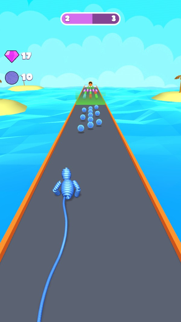 2、玩家将操控一个由毛线组成的绳索人在赛道上进行奔跑,不断前进会消耗绳索;