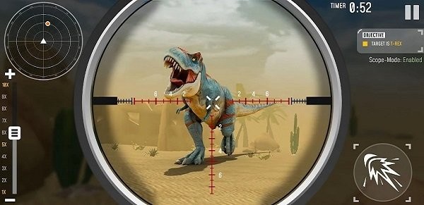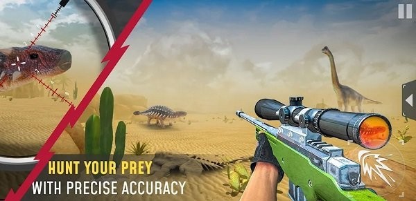 狙击手恐龙狩猎是一款侏罗纪世界的狙击枪战狩猎游戏,让玩家借助现代化枪械武器的辅助,称霸整个恐龙世界,疯狂肆虐游戏世界,体验其中惊险刺激的热血冒险,凭借精准的枪法,狩猎不同种类的凶猛恐龙,并且快速驯服各种远古生物成为自己的宠物,超远距离的射击狩猎会突显出其中的趣味玩法哦。