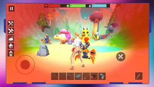 1、在冒险过程中发现并捕获各种萌宠,通过喂养、训练和进化提升它们的实力;