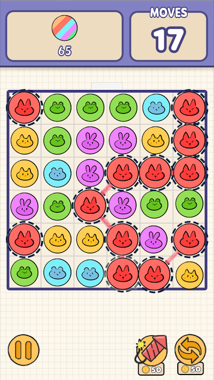 彩色画线消除(Link More)每一个关卡都有独特的布局和障碍,迫使玩家思考新策略来解决,难度逐渐增加,从简单到复杂,保证了游戏始终充满挑战性,不仅是方块本身拥有鲜艳吸引人的颜色,连线时产生的动态效果也同样华丽,为玩家提供了视觉上的享受。