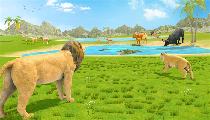狮子王动物森林(Lion King Animal Simulator 3d)这款深度模拟狮子丛林生活的游戏,以其高度真实和沉浸式的体验而著称,游戏中设计了一个复杂且动态变化的生态系统,其中包含多种植物、食草动物、捕食者和其他狮群,玩家必须理解并利用这个系统来确保自己狮群的存活。