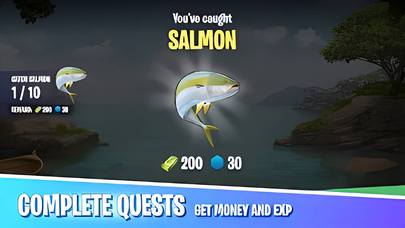 1、探索不同的钓鱼场景,挑战各种鱼类,完成钓鱼任务;